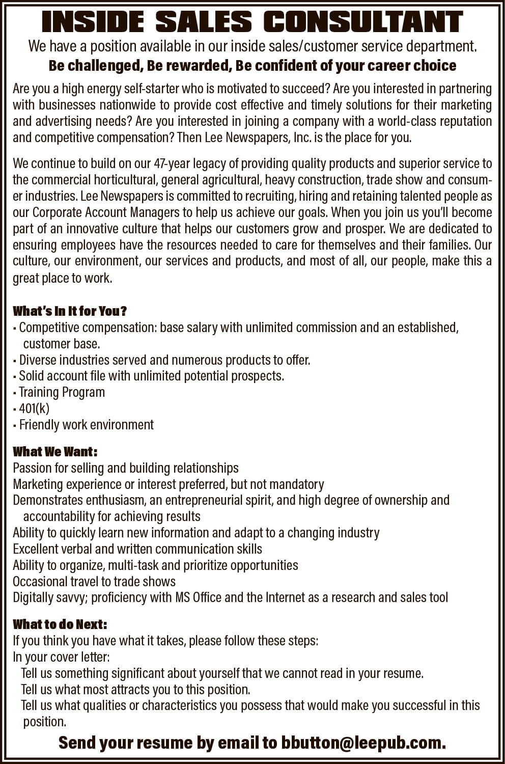 Lee Publications, Inc. publishes targeted trade publications and trade shows for the agricultural, heavy construction, aggregate, commercial horticulture, and solid waste industries.